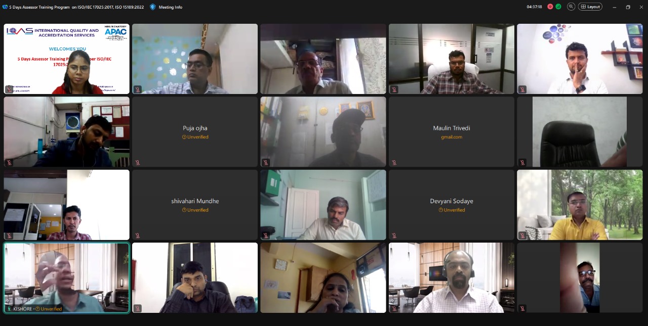 Assessor Training Course on ISO/IEC 17025:2017, conducted virtually by IQAS from June 29 to July 3, 2024.