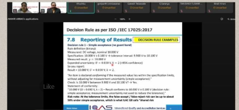 On 20th - 21st June, 2025, IQAS conducted a comprehensive training program titled "Measurement Uncertainty & Decision Rule as per ISO/IEC 17025:2017" This session was designed to provide participants with essential theoretical knowledge and practical skills in evaluating Measurement Uncertainty & Decision Rule as per ISO/IEC 17025:2017 .Program Highlights:IQAS organized a specialized training on “Measurement Uncertainty & Decision Rule as per ISO/IEC 17025:2017,” focusing on identifying uncertainty sources, statistical evaluation, and applying decision rules. Participants enhanced their understanding of uncertainty concepts, ensuring reliable, traceable measurements and improved compliance in laboratory testing and calibration activities.