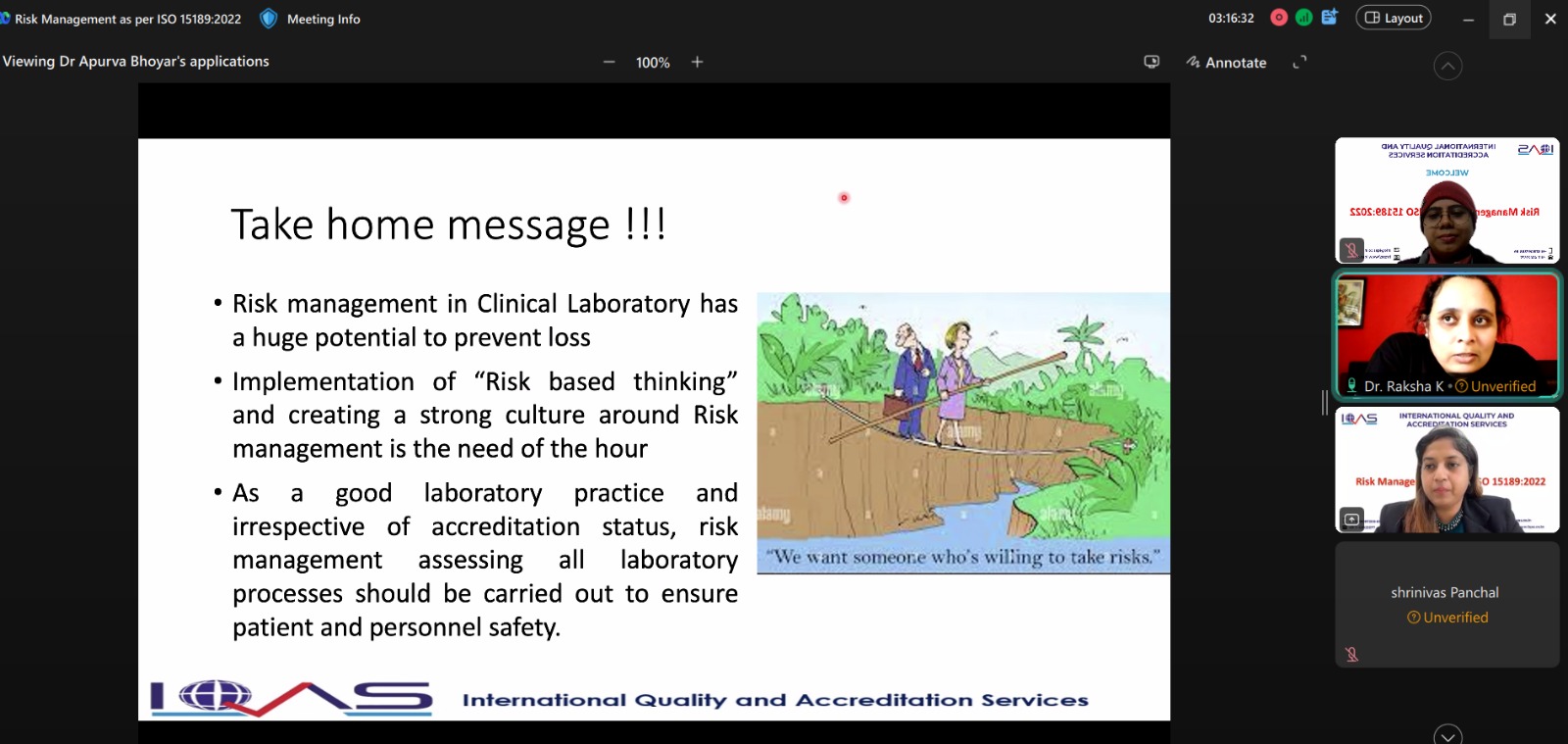 Program Highlights: Successfully conducted a half-day training on Risk Management as per ISO 15189:2022, focusing on risk-based thinking, identification, assessment, and mitigation of risks in medical laboratories. The session covered integration of risk management into the quality management system, along with practical approaches for ensuring patient safety and continual improvement. Participants gained valuable insights through interactive discussions and real-case examples.
